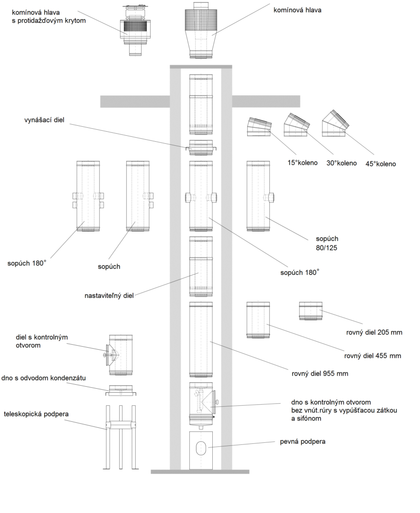 Ideálne riešenie pre pripojenie kondenzačných spotrebičov v bytových domoch, prípadne využiteľný pri dostavbe komínového telesa do už existujúcich bytových domov.